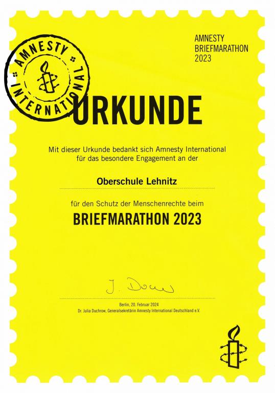 Mit dem Anliegen der Botschaft zum Frieden unter den Menschen verfassten die 9. Klässlerinnen Toni-Amelie Keller, Helene Gratz, Lena Bramer und Valerie Nick innerhalb des Musikunterrichts einen Rap Text und nahmen diesen in Zusammenarbeit mit Matondo Castlo zu einem eigenen Beat auf.