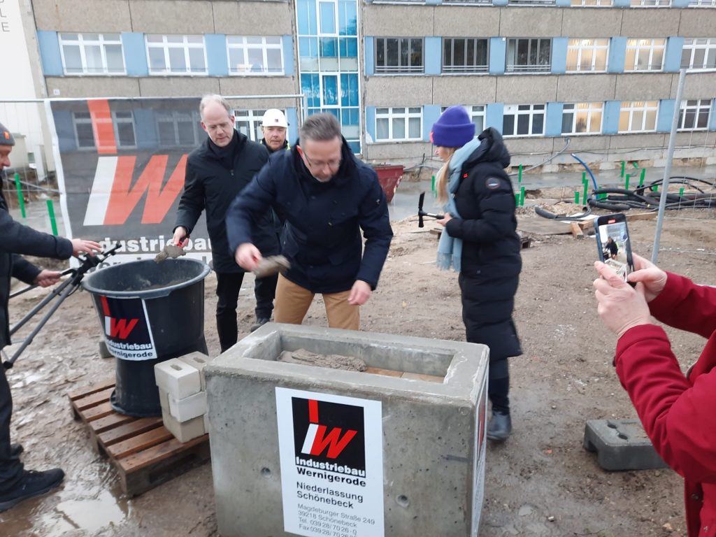 Die neue Oberschule Lehnitz wächst weiter. Am Montag, 15. Januar 2024, haben Landrat Alexander Tönnies, Schuldezernent Holger Mittelstädt sowie Schulleiterin Katja Hoyer den Grundstein für den Erweiterungsneubau der weiterführenden Schule gelegt.
