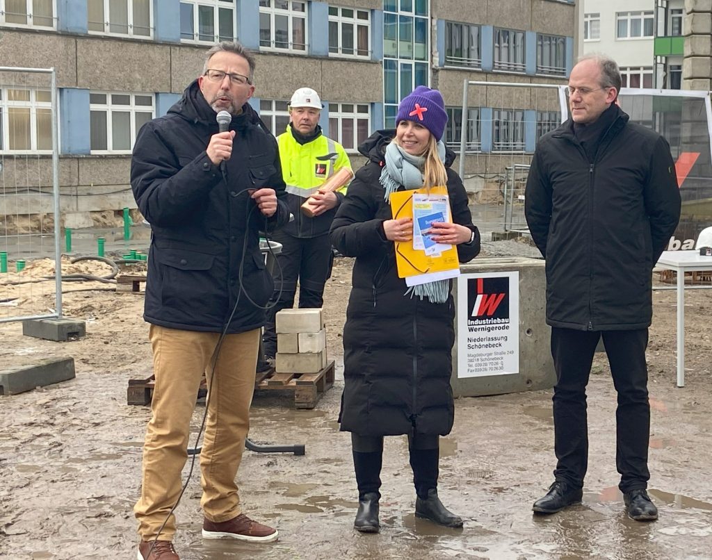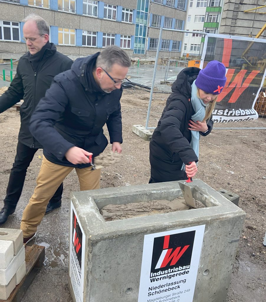 „Mit dem Baustart machen wir einen weiteren wichtigen Schritt für die Stärkung unserer Schullandschaft. Die Zahl der Schülerinnen und Schüler an der Oberschule Lehnitz hat sich seit ihrem Start als eigenständige Schule im Jahr 2020 mehr als vervierfacht. Mit dem Erweiterungsbau stellen wir sicher, dass sie unter guten Bedingungen lernen und dass die Lehrkräfte unter guten Bedingungen arbeiten können“, sagte Landrat Alexander Tönnies. Am Mühlenbecker Weg entsteht nun ein dreigeschossiger Neubauriegel mit einer Grundfläche von etwa 50 mal 16 Metern, der etwa zehn Meter in die Höhe ragt. Im Erdgeschoss befinden sich zukünftig der Eingangsbereich, eine Mensa, eine Aula mit Bühne, die Ausgabeküche, die Lehrküche für das Fach WAT und ein Gruppenraum.