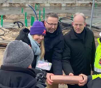Die neue Oberschule Lehnitz wächst weiter. Am Montag, 15. Januar 2024, haben Landrat Alexander Tönnies, Schuldezernent Holger Mittelstädt sowie Schulleiterin Katja Hoyer den Grundstein für den Erweiterungsneubau der weiterführenden Schule gelegt.