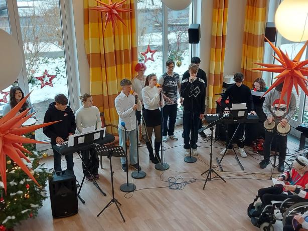 Auftritt des Musikkurses der 10. Klasse der Oberschule Lehnitz am 7.12.23 im „Haus Angerhof“ in Glienicke Nordbahn